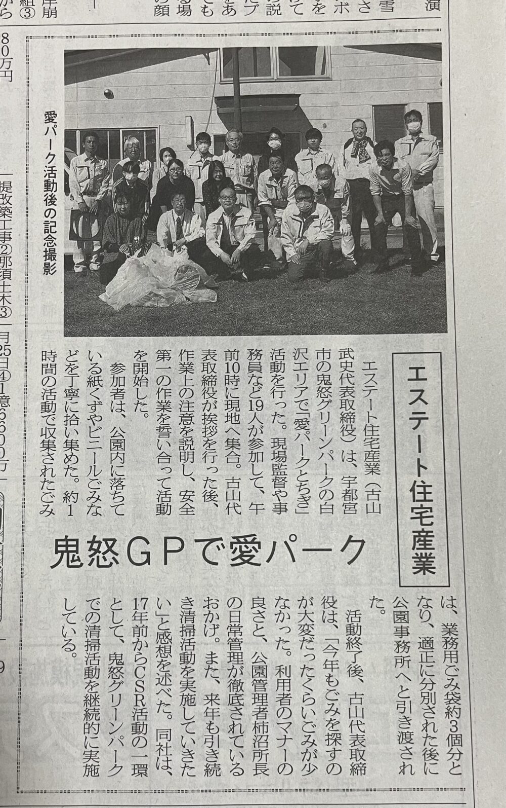 総合案内2023.11.29CSR活動が日刊建設新聞へ掲載されました鬼怒グリーンパーク清掃活動の様子が 2023年11月8日(水)発刊の日刊建設新聞に掲載されました。 弊社はCSR活動の一環として、17年前からこの活動を実施しております。 2017年には長期にわたる環境美化への尽力が認められ、 県公園事務所から表...