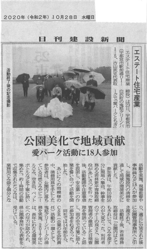 採用情報 お問い合わせ お知らせ News HOME > お知らせ > 総合案内 > 愛パークとちぎへ参加しました 総合案内 2020/11/02 愛パークとちぎへ参加しました 2020年10月23日 環境美化ボランティア愛パークとちぎ活動へ参加し、鬼怒グリーンパークの清掃活動を行いました。 弊社はCSR活動の一環として14年前から活動を実施しています。 今年は18人が参加し、あいにくのお天気でしたが約1時間公園内のゴミ拾いを行いました。 今後も地域貢献活動へ積極的に参加していきます。 一覧を見る